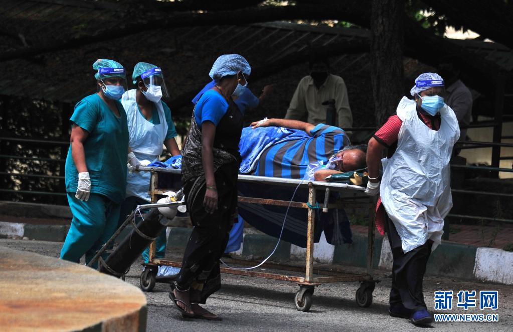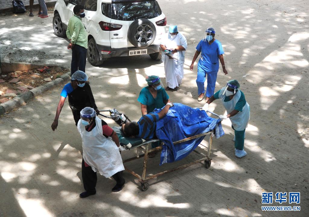 5月24日,医务人员将一名新冠患者送往印度班加罗尔一家医院。印度累计新冠死亡病例24日达到303720例,成为继美国、巴西后第三个累计新冠死亡病例数超过30万例的国家。新华社发