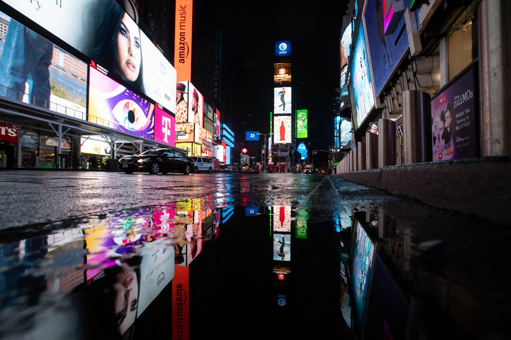 3月24日,车辆驶过美国纽约时报广场。(新华社发,郭克摄)