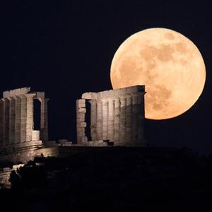 5月26日,“超级月亮”出现在希腊苏尼翁的海神庙遗址上空。