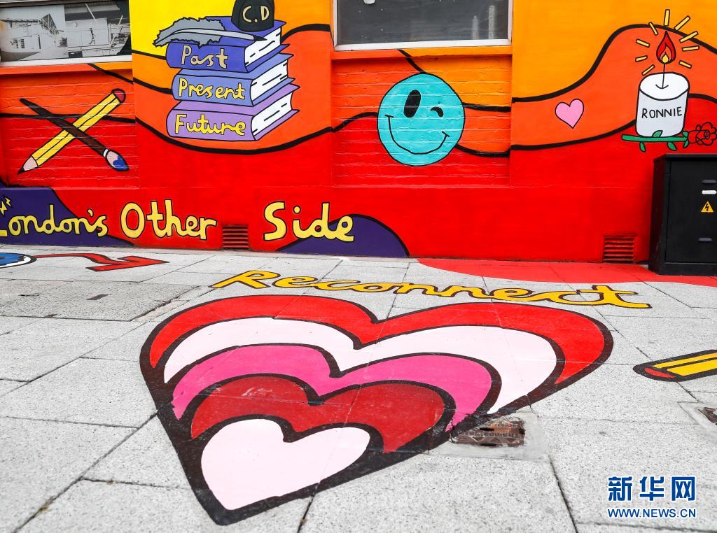 这是5月26日在英国伦敦泰晤士河南岸拍摄的墙上和地面上的艺术作品。