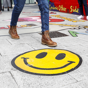 当日,泰特现代美术馆附近的泰晤士河南岸街头出现一系列以“超越界限”为主旨的艺术作品。这一系列作品都与疫情“封城”相关,希望给城市注入积极乐观的精神,为街头带来一抹靓色,并号召人们重新沟通。