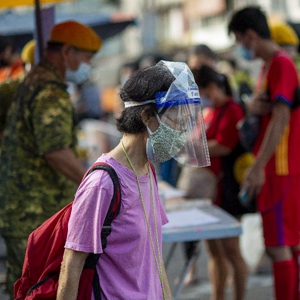 5月29日,戴着防护面罩的女子在马来西亚吉隆坡一处市场内购物。