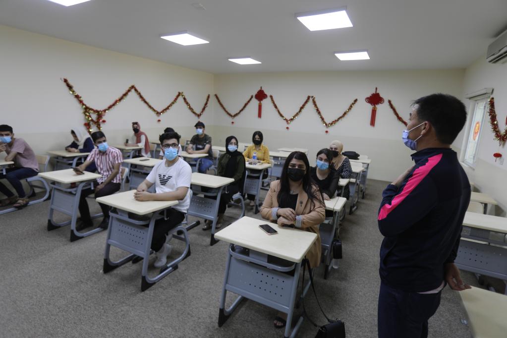 5月23日,伊拉克埃尔比勒市萨拉赫丁大学中文系的学生回到阔别已久的教室。新华社发