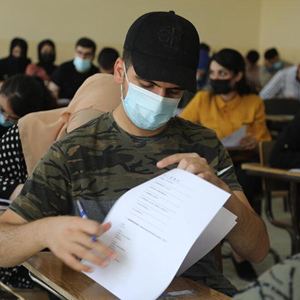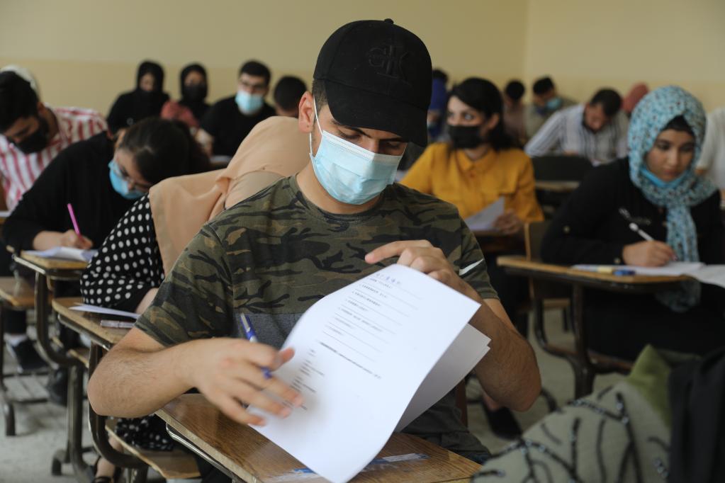 5月23日,伊拉克埃尔比勒市萨拉赫丁大学中文系学生参加期末考试。新华社发