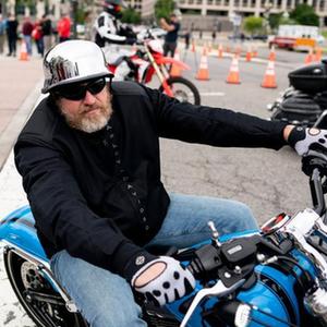5月30日,在美国首都华盛顿,参加“滚雷”摩托车大游行的车辆驶过街头。