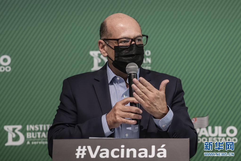 5月31日,布坦坦研究所所长迪马斯·科瓦斯在巴西圣保罗州举行的新闻发布会上讲话。新华社发(拉赫尔·帕特拉索摄)