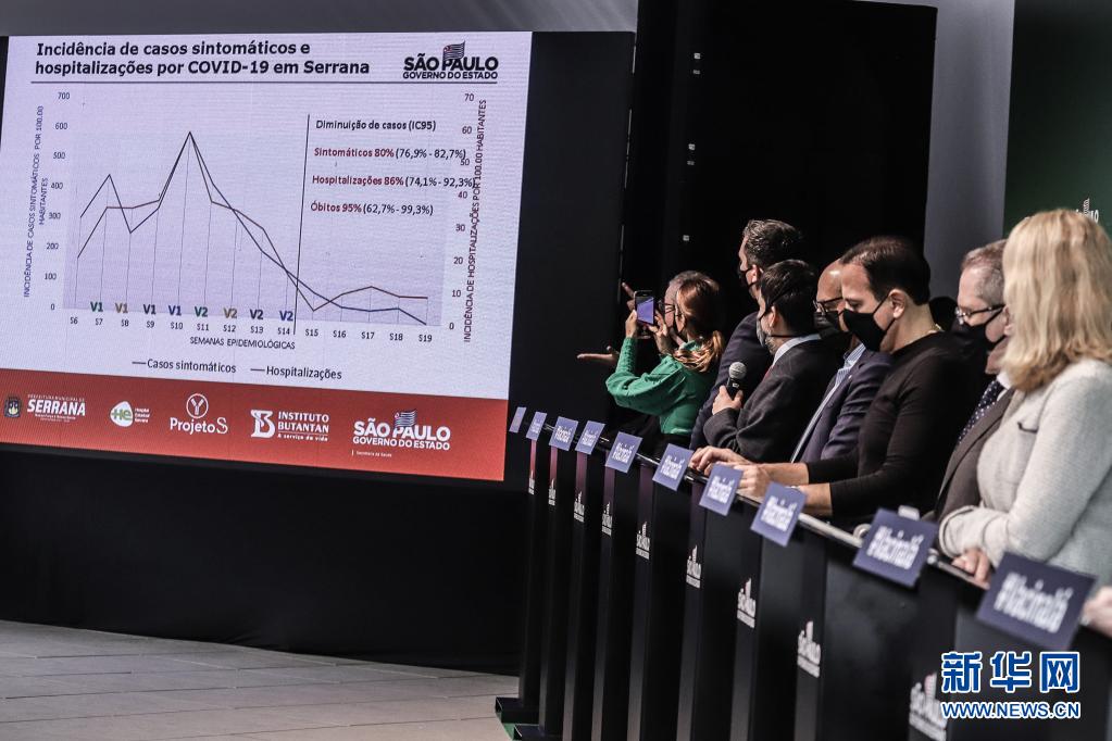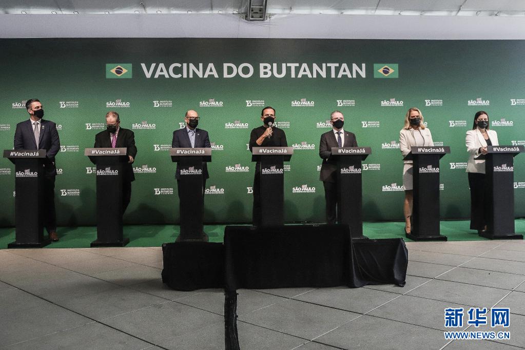 5月31日,巴西圣保罗州政府官员和布坦坦研究所研究人员在巴西圣保罗州出席新闻发布会。新华社发(拉赫尔·帕特拉索摄)