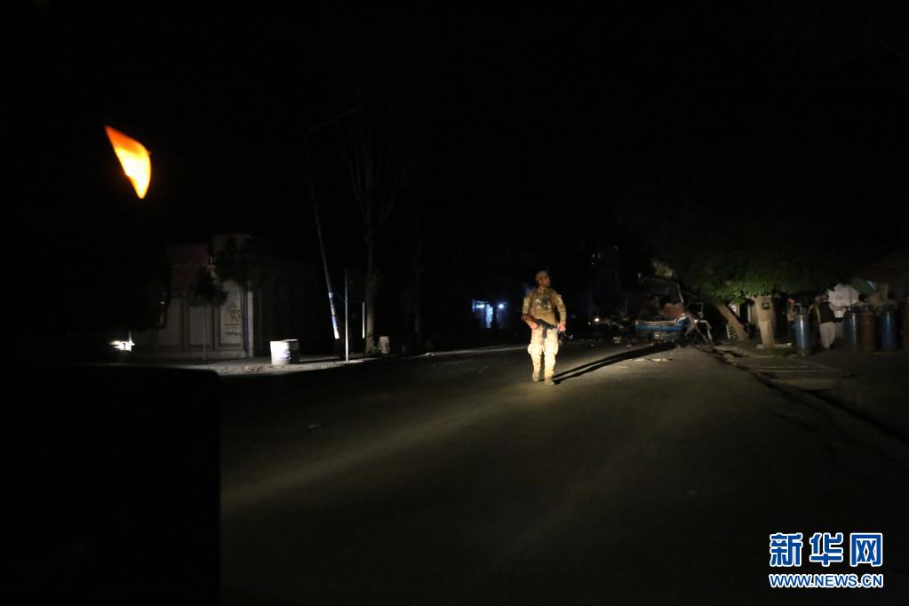 6月1日,在阿富汗首都喀布尔,一名安全人员在炸弹袭击现场警戒。新华社发(拉赫马图拉·阿里扎达摄)