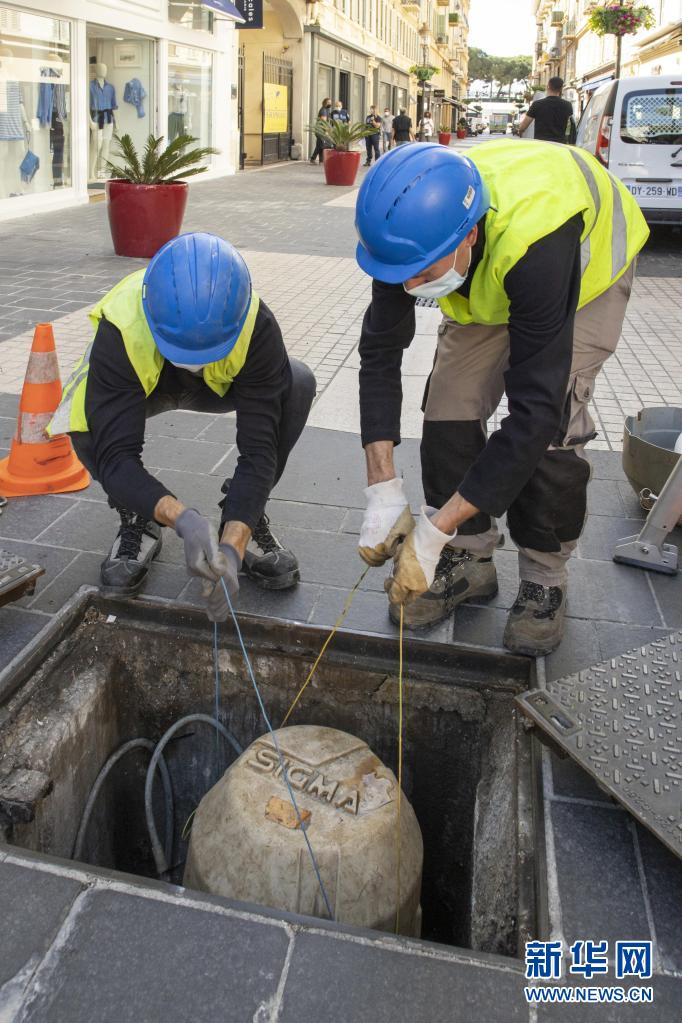 6月1日,工作人员在法国尼斯的下水管道中提取废水。
