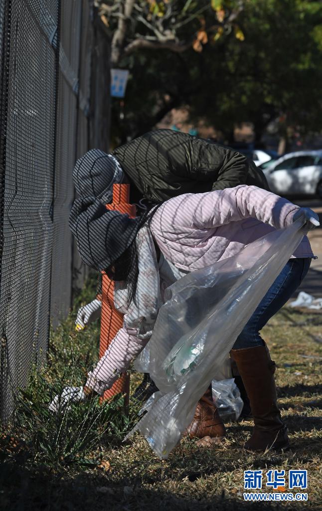 6月5日,志愿者在南非比勒陀利亚捡拾垃圾。新华社记者 陈诚 摄