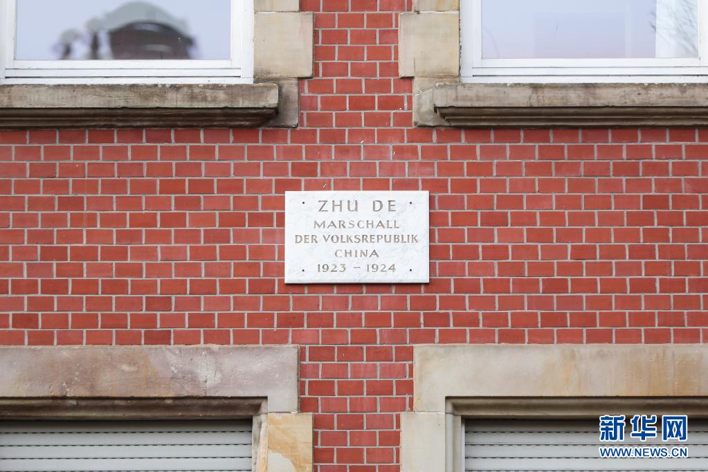 这是2021年4月16日在德国哥廷根拍摄的普朗克街3号朱德故居,正墙上挂着一块精致的大理石纪念牌匾,上面用德语镌刻着“朱德,中华人民共和国元帅”等字样。 新华社记者 单宇琦 摄