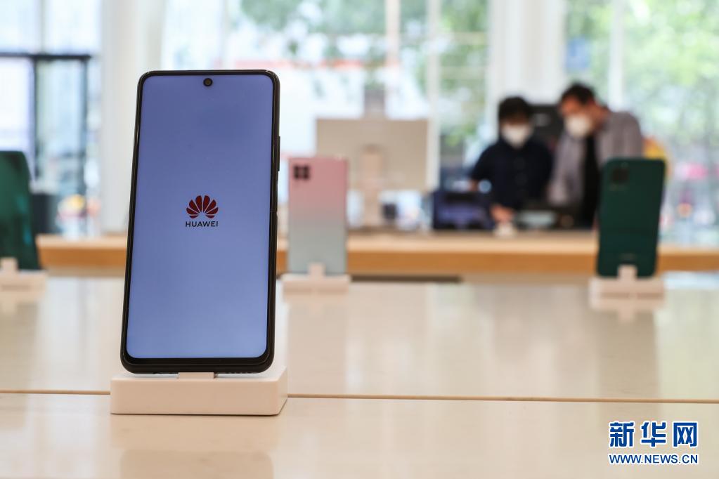 这是6月8日在德国首都柏林的华为旗舰店拍摄的手机。