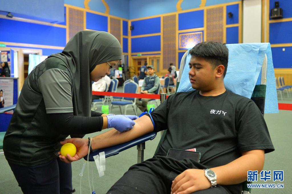 6月14日,一名男子在文莱斯里巴加湾市参与无偿献血活动。