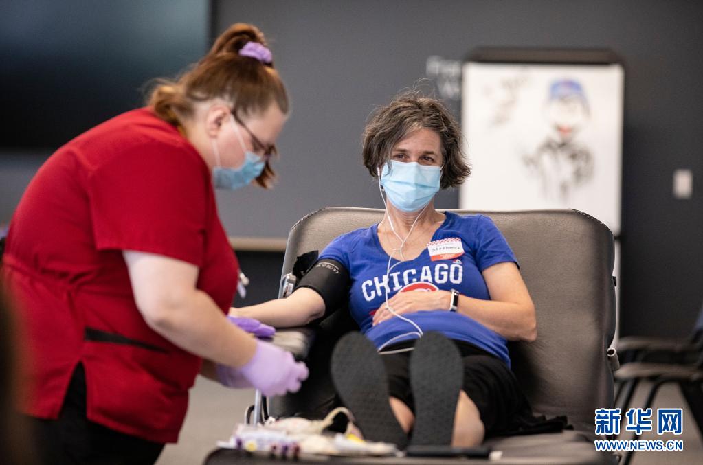 这是6月14日在美国芝加哥的大芝加哥地区红十字会一献血站内拍摄的献血志愿者。新华社发(乔尔·莱纳摄)