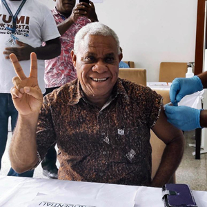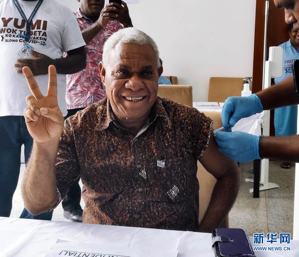 6月15日,瓦努阿图总理拉夫曼在首都维拉港国家会议中心接种中国疫苗。