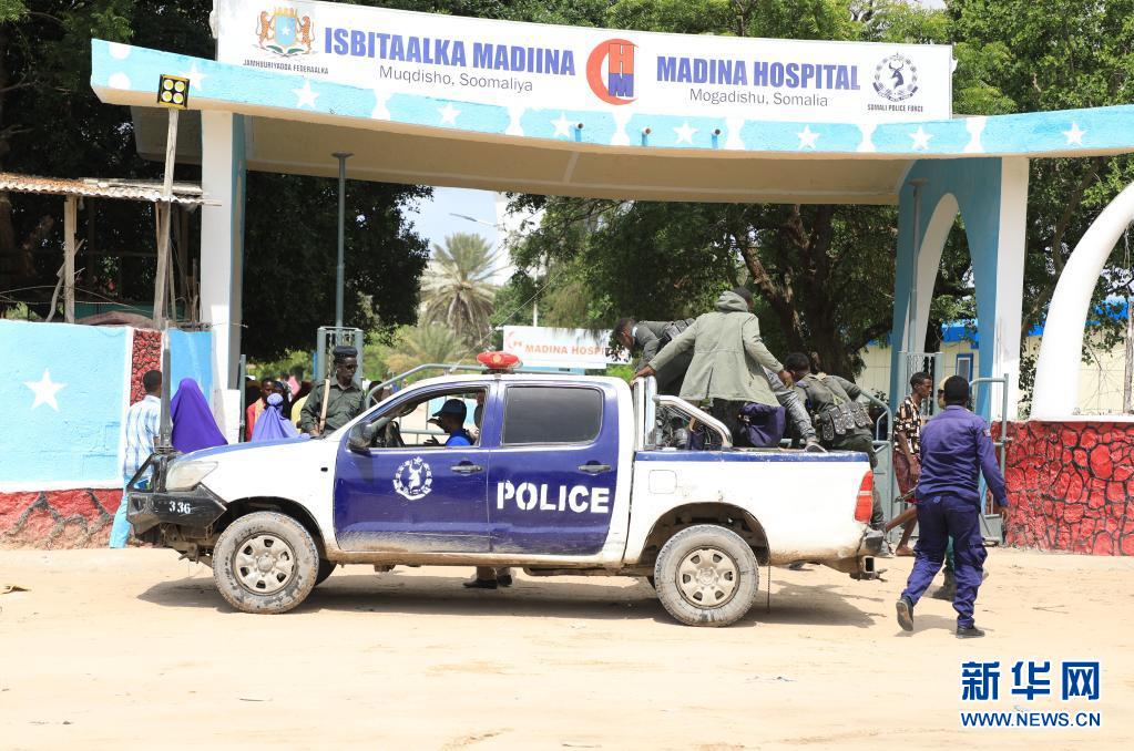 6月15日,一辆警车抵达索马里首都摩加迪沙的一所医院。