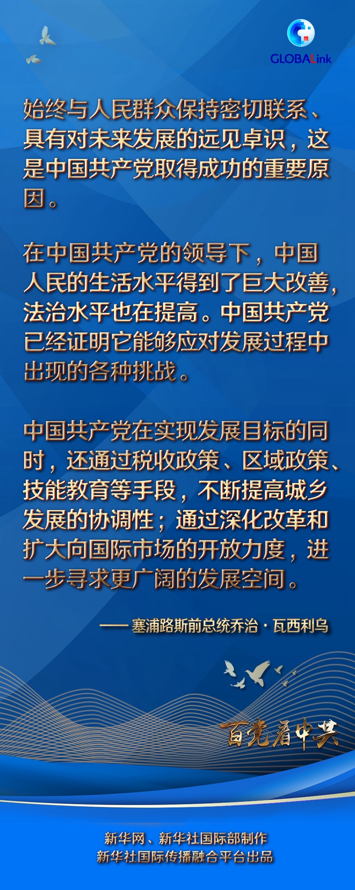 瓦西利乌认为,始终与人民群众保持密切联系、具有对未来发展的远见卓识,这是中国共产党取得成功的重要原因。他表示,中国共产党有能力制定最适合国情的政策,同时有效地与腐败现象作斗争,带领国家不断前进。