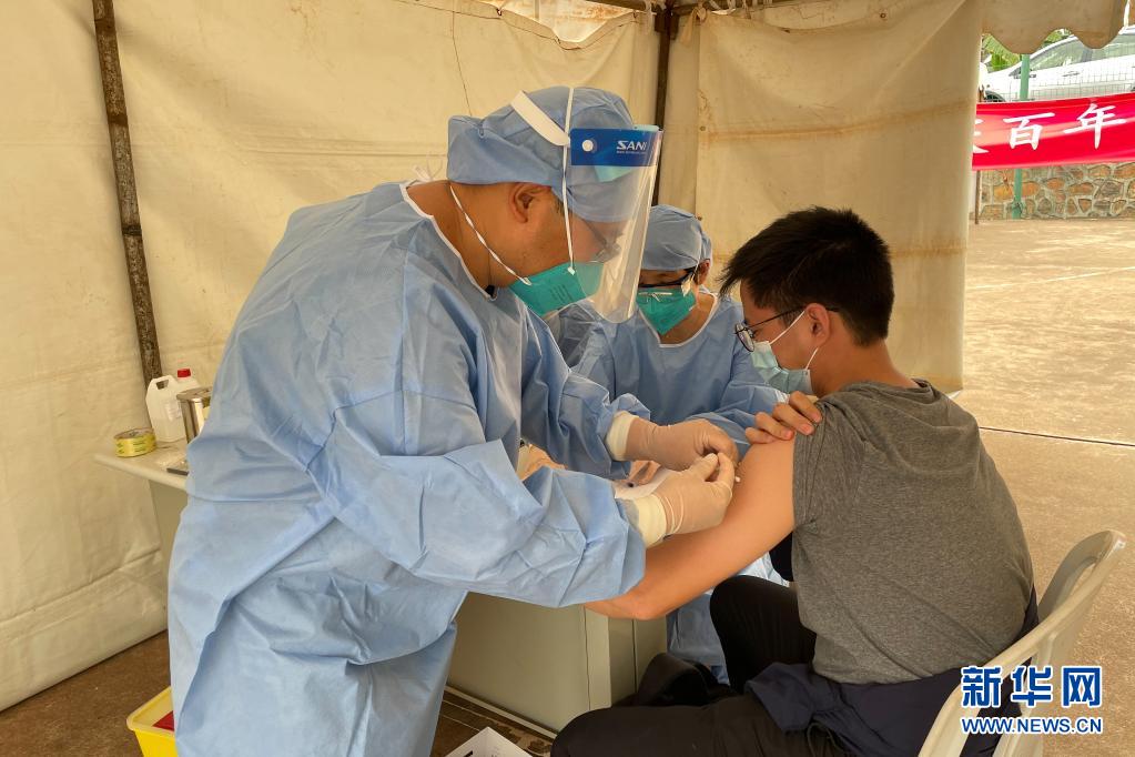 6月16日,中国援助卢旺达医疗队队员在基加利为一名中国公民接种新冠疫苗。新华社发(中国驻卢旺达大使馆供图)