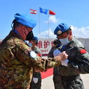 新华社贝鲁特6月16日电(丁文栋 刘雄马)中国第19批赴黎巴嫩维和部队授勋仪式16日上午在黎巴嫩南部辛尼亚村的中国维和营举行,410名官兵全部被授予联合国和平勋章。