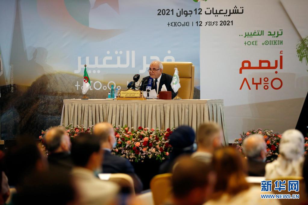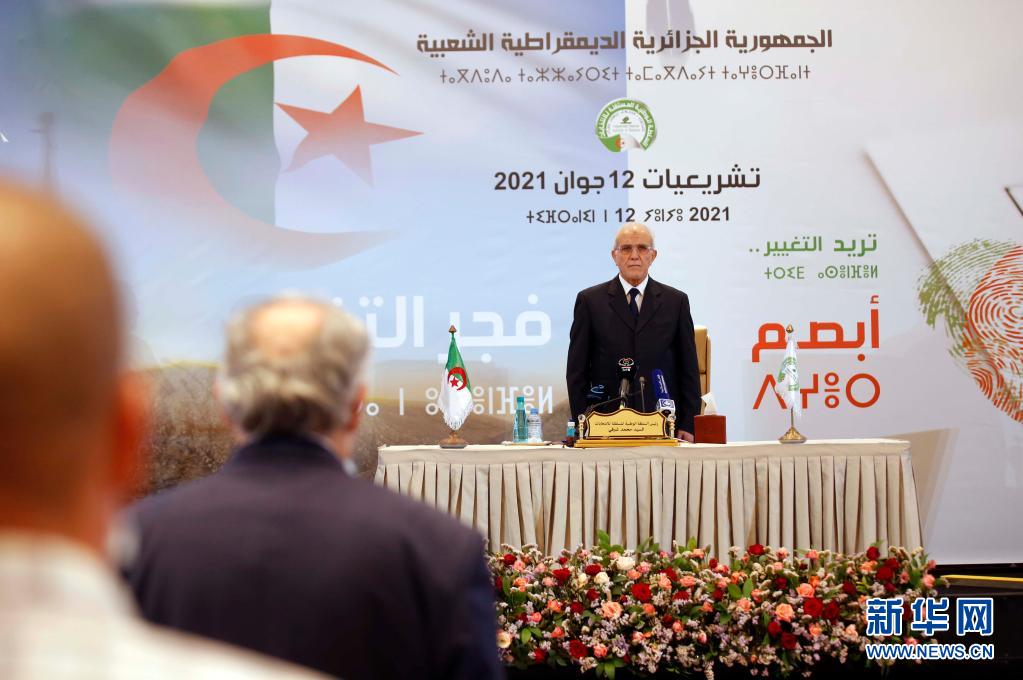 6月15日,阿尔及利亚独立选举监督委员会主席穆罕默德·舒尔菲在阿尔及尔公布国民议会选举结果。新华社发