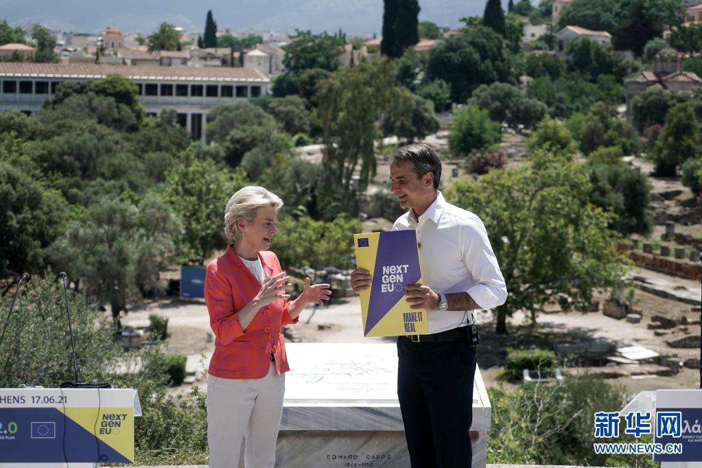 冯德莱恩17日在雅典和希腊总理米佐塔基斯举行了联合新闻发布会。她表示,希腊此次获批资金的65%将用于数字化和绿色经济转型,首批资金预计于7月拨付。