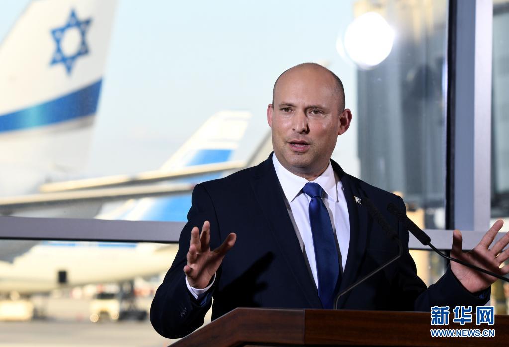 6月22日,以色列总理贝内特在本古里安国际机场发表电视声明。