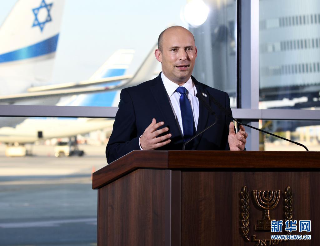 6月22日,以色列总理贝内特在本古里安国际机场发表电视声明。