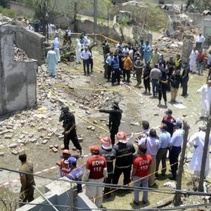6月23日,安全人员在巴基斯坦拉合尔爆炸事件现场调查。
