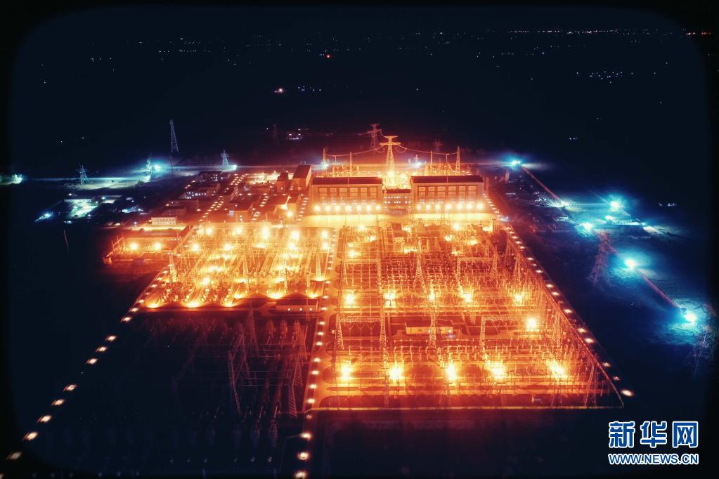 这是2021年4月10日在巴基斯坦东部旁遮普省首府拉合尔拍摄的中巴经济走廊默拉直流输电工程拉合尔换流站夜景。