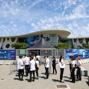 6月27日,在西班牙巴塞罗那,工作人员准备进入2021世界移动通信大会的主会场——巴塞罗那会展中心。
