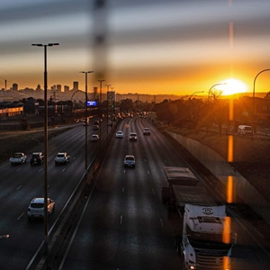 6月28日,汽车行驶在南非约翰内斯堡的马路上。
