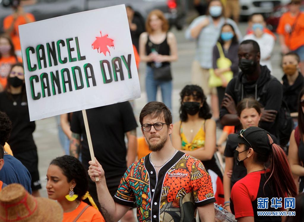 当天是加拿大日,上千名抗议者在温哥华集会,悼念加拿大在强制“同化”原住民过程中遭到残害的儿童,呼吁取消加拿大日的庆祝活动。