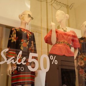 这是7月3日在意大利罗马拍摄的一处店铺的打折季标识。