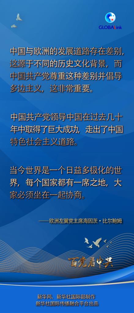欧洲左翼党主席海因茨·比尔鲍姆日前在接受中国媒体联合采访时表示,中国与欧洲的发展道路存在差别,这源于不同的历史文化背景,而中国共产党尊重这种差别并倡导多边主义,这非常重要。