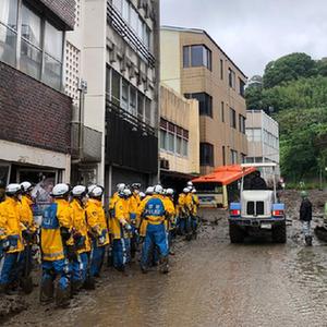 7月4日,救援人员在日本静冈县热海市协助转移当地居民。
