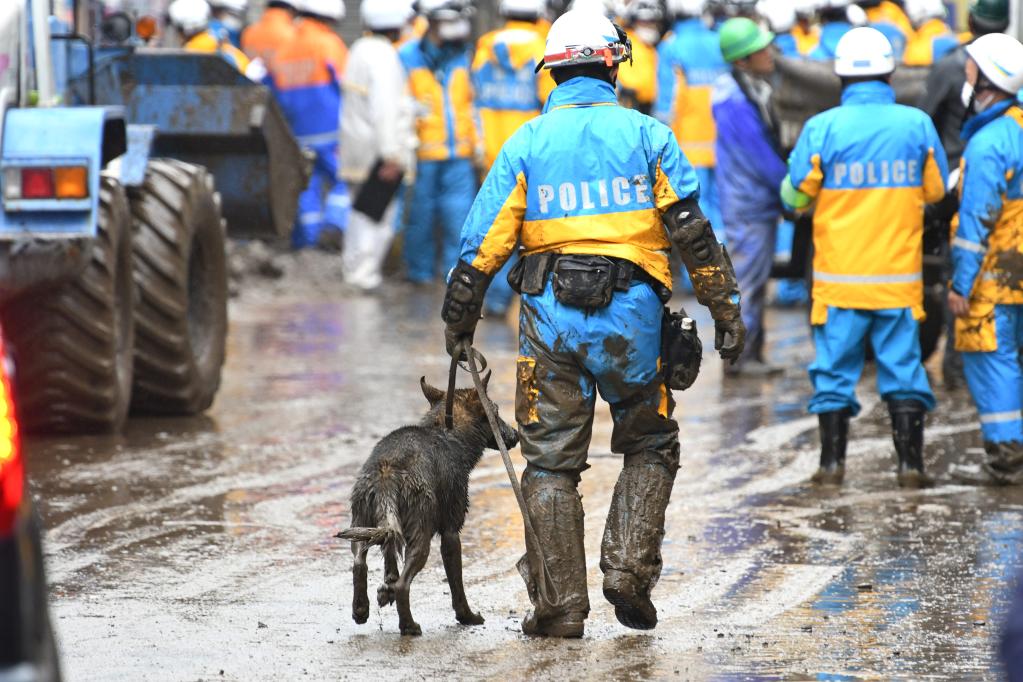 新华社日本热海7月4日电 视线所及满是泥泞,山脚下的房屋化为废墟,几台挖掘机在雨中工作,一条刚从现场撤出的搜救犬浑身污泥,神情慌张……
