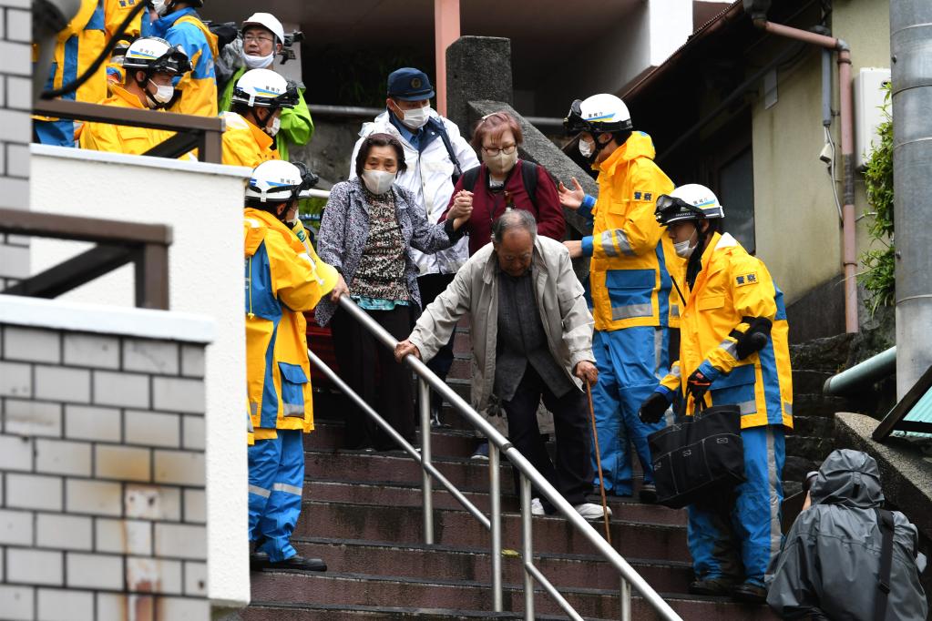 7月4日,救援人员在日本静冈县热海市协助转移当地居民。新华社记者华义摄