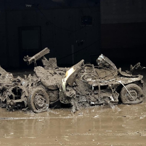 一夜过后,街道恢复平静,只剩下一片狼藉。新华社记者4日在现场看到,路面被厚厚的黑色泥浆覆盖,一辆公交车半个车身都陷入泥中。在一座楼房的临街处,有一堆被泥浆包裹着、完全变形的钢架残骸,只有瘪气的轮胎可证明它曾是一辆小汽车。