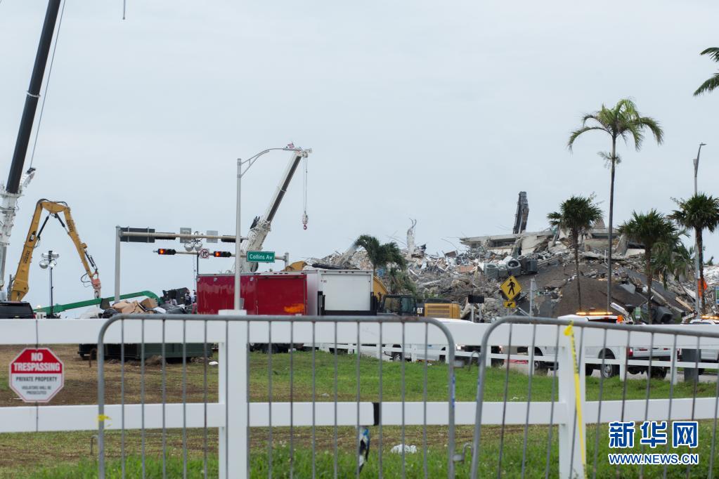 这是7月6日拍摄的美国佛罗里达州迈阿密-戴德县的住宅楼坍塌事故现场。新华社发(莫妮卡·麦克盖文摄)