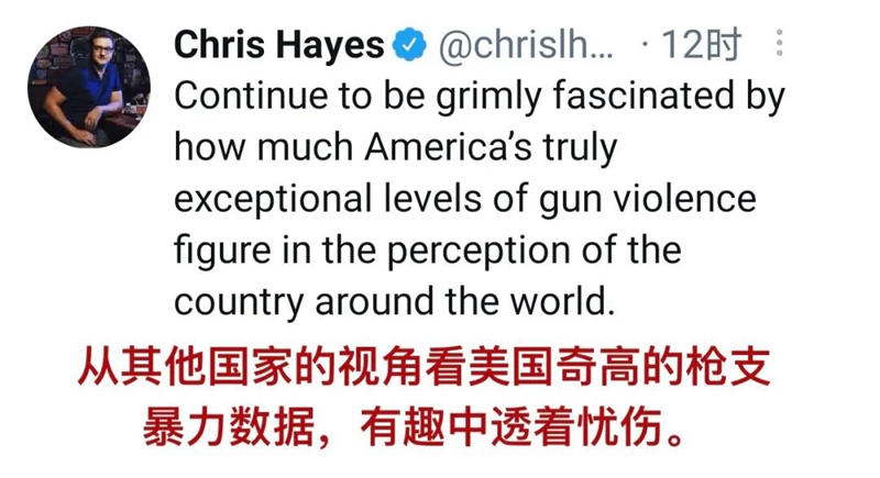 美国在国内以“持枪自由”为幌子,让两党在控枪议题上争议不休,导致无数平民命丧枪口,在国外却大张旗鼓地扮演人权“卫道士”,以人权为借口对他国内政横加干涉。