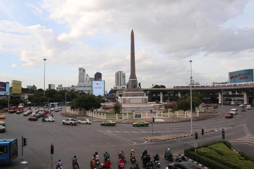 以往车水马龙的曼谷民主纪念碑在疫情下冷冷清清。新华社发(涂慧莹摄)