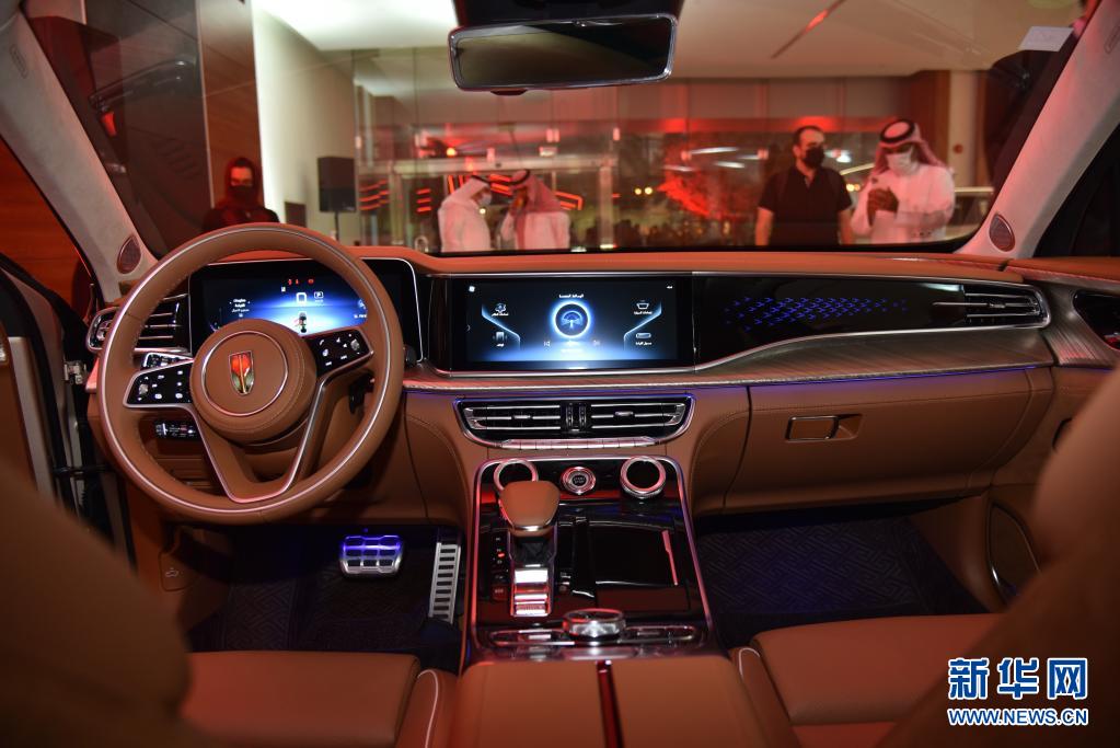 这是6月30日在沙特阿拉伯利雅得的中国一汽红旗旗舰店内拍摄的H9车型内饰。