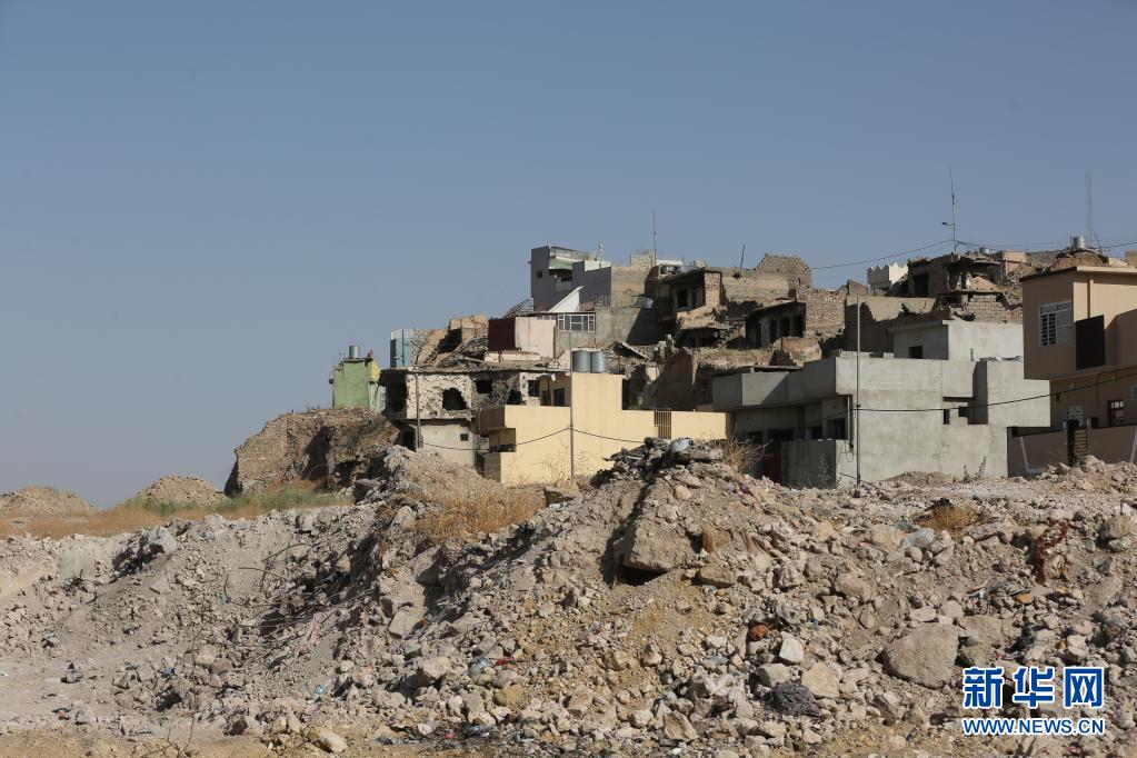 这是7月3日在伊拉克摩苏尔老城拍摄的废墟上新建的房屋。