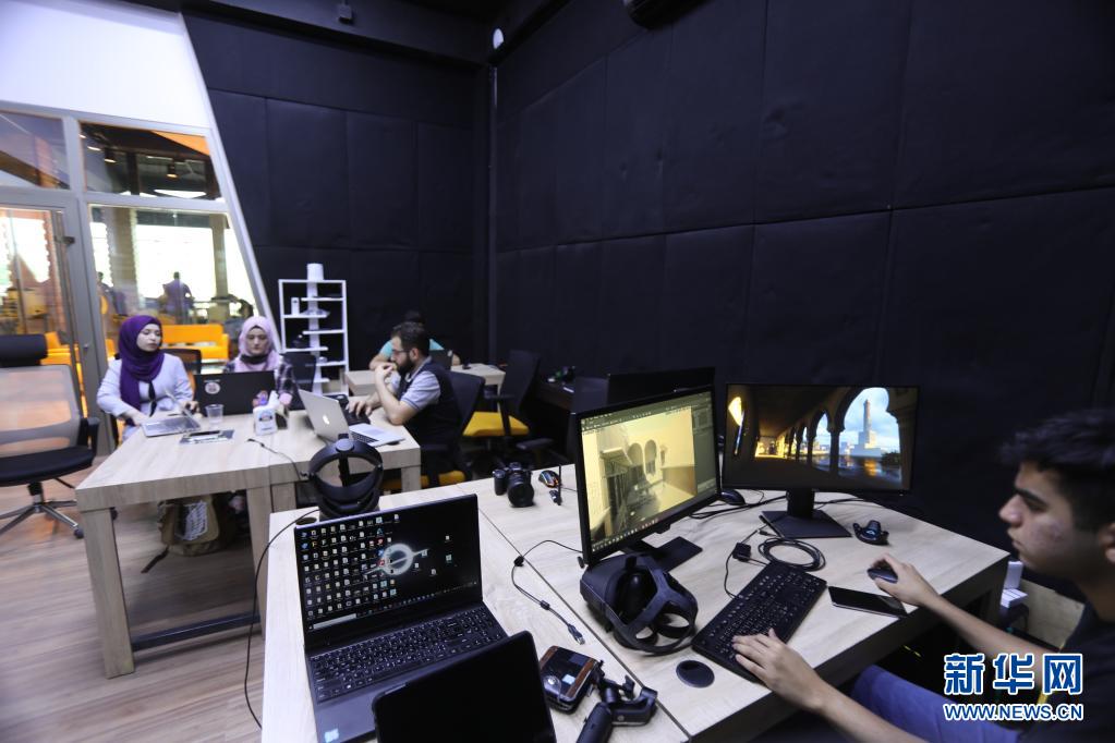 7月3日,在伊拉克摩苏尔一家名为QAF LAB的初创公司,工作人员尝试利用虚拟现实技术,用影像恢复摩苏尔老城被破坏的清真寺、教堂、古宅、公共浴室等重要历史遗迹。