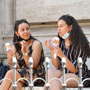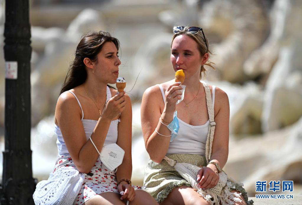 7月11日,两名女子在意大利罗马吃冰淇淋消暑。