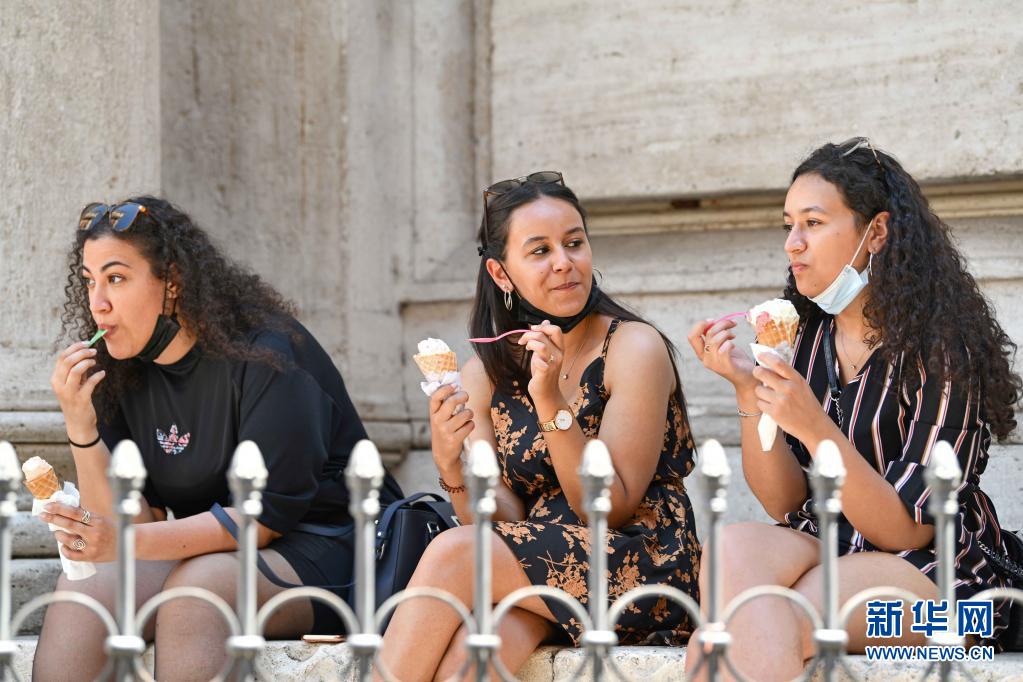 7月11日,人们在意大利罗马吃冰淇淋消暑。