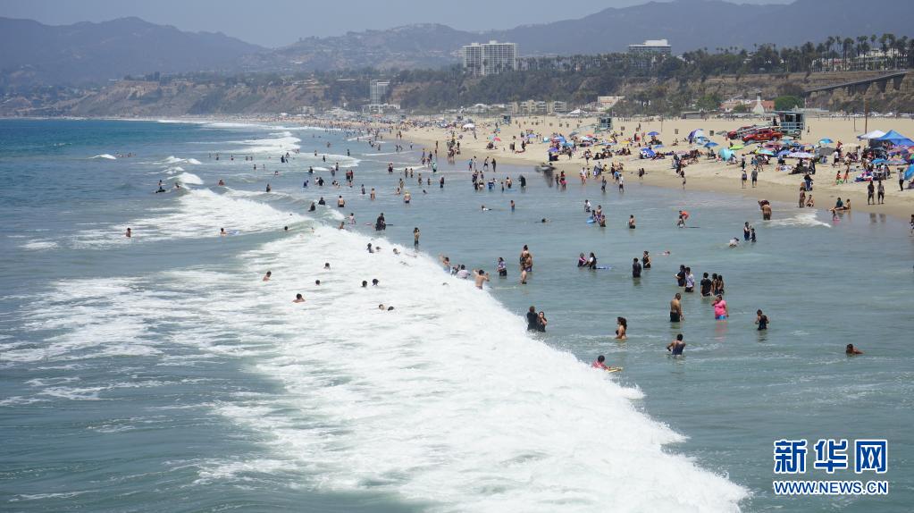 7月11日,人们在美国加利福尼亚州圣莫尼卡海滩消暑。