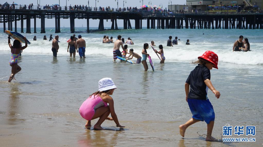 7月11日,人们在美国加利福尼亚州圣莫尼卡海滩消暑。