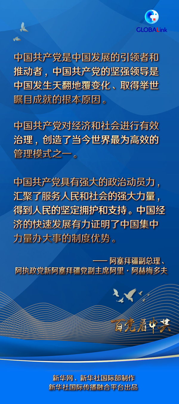 阿赫梅多夫热烈祝贺中国共产党成立100周年。他说:“我相信,在中国共产党的领导下,未来中国必将取得更多的辉煌成就。”
