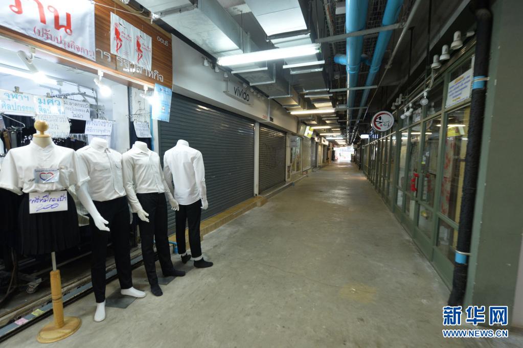 这是7月12日在泰国曼谷拍摄的关闭的店铺。